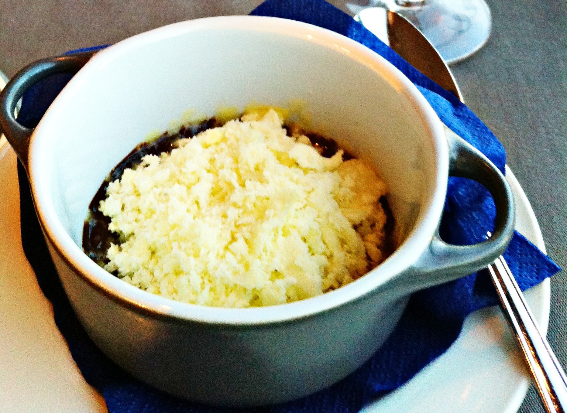 Varsinaisista jäkiruoista suklaaöljy oliiviöljysorbetin (koostumukseltaan ehkä enemmän granitan?) kera oli syntisen rasvaista ja juurikin yhtä herkullista.