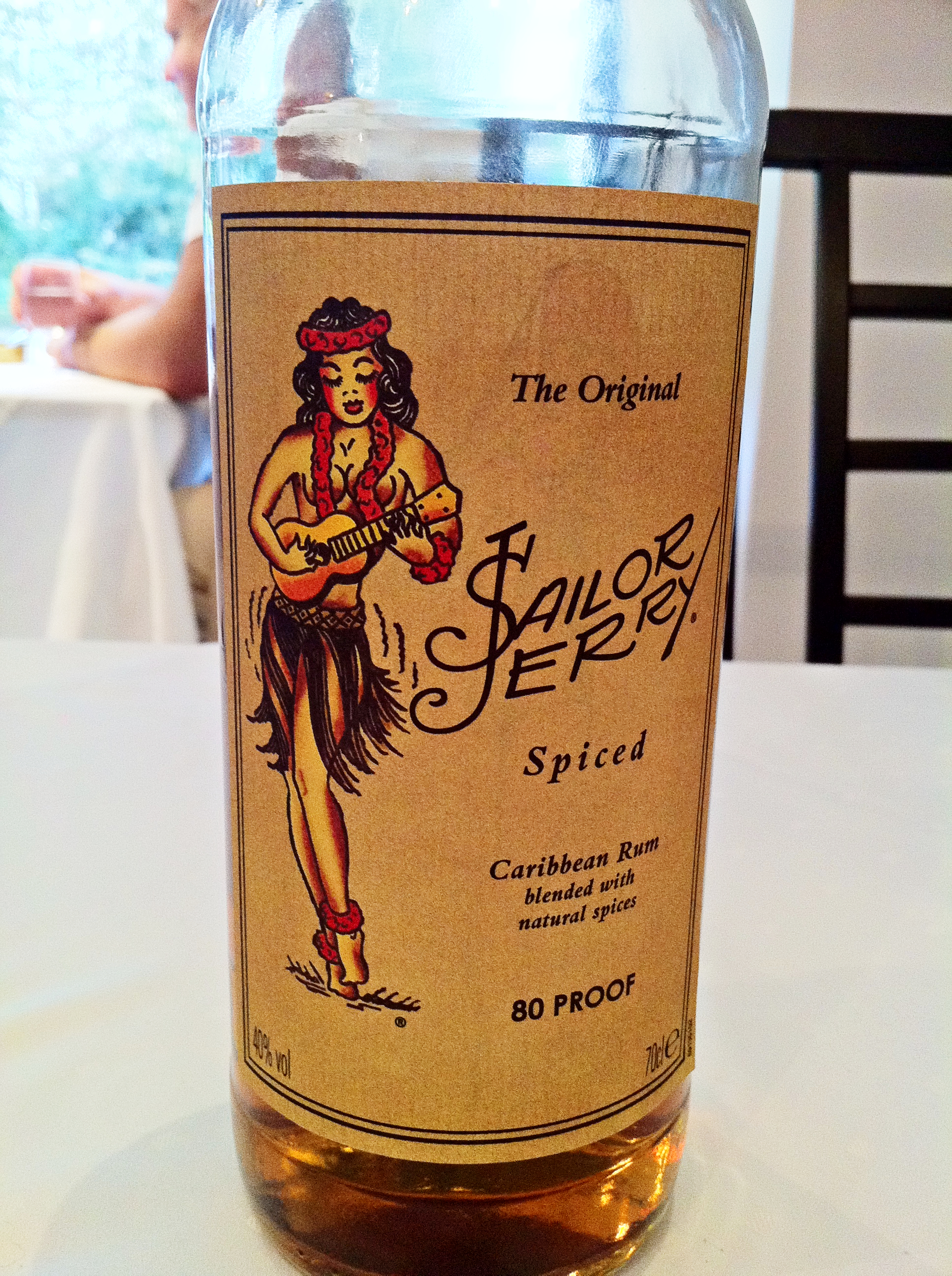 Uusi hovimestari ei ole muuttanut myöskään kahviperinnettä: tarjolla on presso-pannulla tehtyä kahvia. Pyysin tapani mukaan jotain outoa ja erikoista sen kanssa, ja sain mainiota Sailor Jerry -rommia, joka oli lähes makean vaniljaista herkkua! Mistä tulikin mieleeni, että kahvin kanssa ei ollut tarjolla pikkuherkkuja, joita aiemmin on ollut… no, ehkä ne tulevat takaisin normaalimuotoisen listan myötä. Toivotaan 🙂