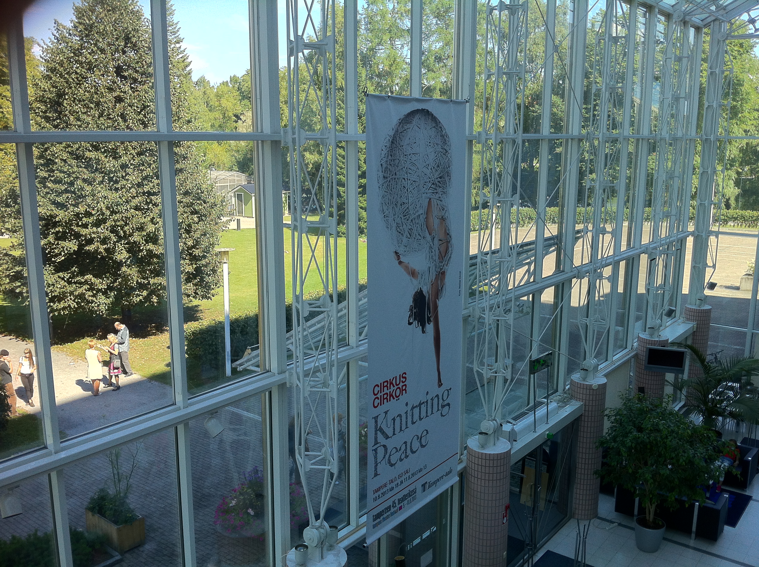 Ruotsalaisen nykysirkusryhmä Cirkus Cirkörin esitys Knitting Peace oli saanut esiintymispaikakseen Tampereen suurimman sisäareenan, Tampere-talon ison salin – eikä näyttämö ollut hiukkaakaan liian suuri esitykselle.