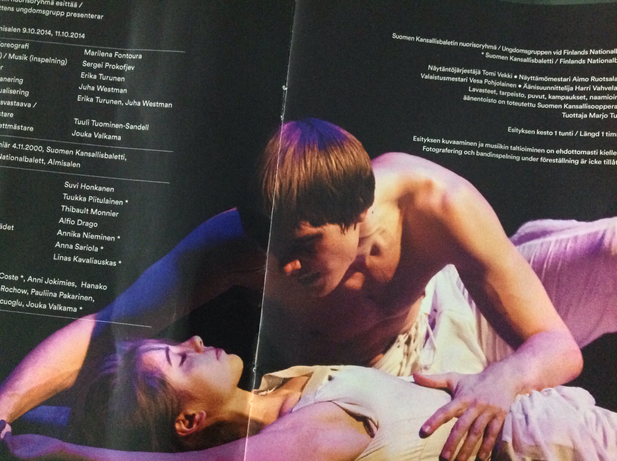 Marilena Fontouran nykytanssikoreografia R & J Prokofjevin musiikkiin sai kantaesityksensä vuonna 2000 eikä sitä ilmeisesti ole esitetty noin kymmeneen vuoteen. On ihmeteltävä, miksi ei: ainakin nyt näkemäni Kansallisbaletin nuorisoryhmän – täydennettynä ”aikuisryhmän” tanssijoilla – esitys oli siinä määrin iholle käyvän koskettava ja tunnetasoltaan korkeajännitteinen, ettei kovin usein pääse kokemaan!