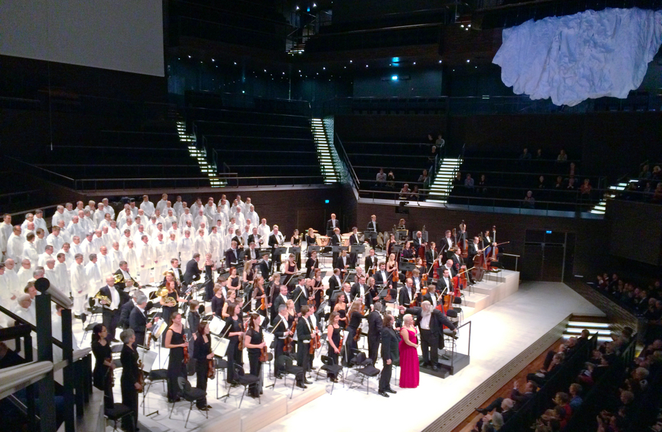 Pitkästä aikaa Helsingin Musiikkitalossa! Sinne houkutteli Sibeliuksen Kullervo – kesällä koin Savonlinnassa Sallisen Kullervon, ja helmikuussa 2015 on Kansallisbaletissa luvassa odotettu Tero Saarisen Kullervo (Sibeliuksen musiikkiin). Oli siis korkea aika kuulla ensi kertaa Sibeliuksen Kullervo ihan livenä – ja vieläpä Leif Segerstamin johtamana, johdettavanaan Turun filharmonisen orkesterin lisäksi kolmesta mieskuorosta (Laulu-miehet, Laulun ystävät ja Naskalit) koottu noin satapäinen jykevän maskuliinen äänilähde sekä solistit Juha Kotilainen (Kullervo) ja Johanna Rusanen-Kartano (Kullervon sisar).