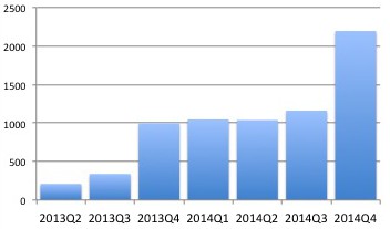 Blogini aihepiirit eivät ehkä laajoja kansanjoukkoja hetkauta, enkä toisaalta ole blogiani kauheasti markkinoinutkaan, joten suuria lukijamääriäkään en odota. Jokusia hittejä vähät jaaritukseni ovat kuitenkin keränneet: 5442 kpl vuonna 2014; reippaasti yli tuplasti verrattuna edellisen vuoden vastaaviin kvartaleeihin. Hitit ovat jakautuneet melko tasaisesti esityksiä ja ravintolakokemuksia koskevien juttujen kesken. Isolta osalta juttujen ääreen on eksytty hakukoneiden johdatuksella mutta myös suorilla linkeillä jonkun verran – esim. Kansallisooppera on alkanut linkittää kritiikkejä ja blogijuttuja teossivuilleen, mitä kautta myös on tullut hiukan lisäliikennettä.
