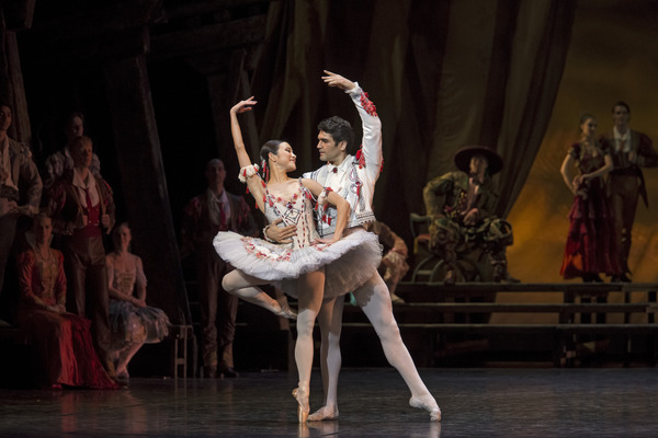 Pääparin, kauniin Kitrin ja nuoren parturin Basilion, rooleissa oli Maria Baranova & Michal Krčmář sekä Eun-Ji Ha ja Sergio Torrado. Baranova ja Krčmář olivat pääosissa myös 2011, kun tämän viimeksi näin, ja kokemus näkyikin varmuutena. Lumoava Eun-Ji Ha saa roolin kuin roolin näyttämään keveältä ja vaivattomalta. Madridista (siis kivenheiton päässä La Manchasta..?) lähtöisin oleva Torrado kiinnitettiin Kansallisbalettiin ensitanssijaksi ihan viime vuoden lopulla – pakko lienee tässä vaiheessa mainita myös se ”leffasta tuttu” -juttu: hän esitti Rothbartia Aronofskyn elokuvassa Black Swan (2010). Torrado tanssi oikein hienosti, ja varsinkin runsaissa nostoissa oli voimaa ja varmuutta. Makuasia, mutta itse olisin kaivannut ilmaisuun vähän vapautuneempaa ja laajempaa skaalaa. Toki vertailukohdat olivat kovin epäedulliset: mm. edellisen illan Basiliona showmies Krčmář, ja nyt vielä erityisen lavakarismaattiset Eun-Ji Ha ja Tuukka Piitulainen.