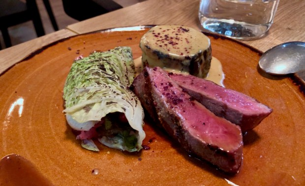 Ympäristö on miellyttävä, ja satunnainen hiiligrillin tuoksun löyhähdys keittiöstä toi mukavan lisänsä tuoksumaailmaan. Palvelu oli erittäin hyvää – hyvin puhelias nuori mies jutteli sujuvasti ruokien ja juomien esittelyt välittömään ja sympaattisen lupsakkaaseen tyyliinsä.