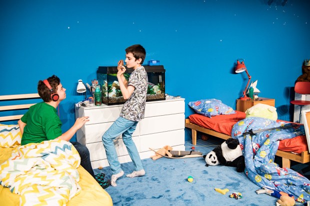 Baselin Medea tapahtuu sinisessä lastenhuoneessa, jossa Leon (Florian Guntrum) ja Jasper (Itamar Mangold) leikkivät ja nahistelevat keskenään. Leikeissä toistuvia teemoja ovat eläimet ja kuolema; toisaalta lauletaan Beatlesin eskapistista Octopus’s Gardenia. Poikien lisäksi ainoat näyttelijät jatkuvasti lavalla ovat akvaariokalat Dummy ja Lord Orange. Pojat on lukittu huoneeseensa, kun vanhemmat keskustelevat – avio- ja rakkausongelmista, tietää Leon, pojista vanhempi. Avio-ongelmat voivat olla vaikeita, mutta rakkausongelmat onneksi ratkeavat suukolla. Ja rakastavathan äiti ja isä toisiaan. Isällä tosin on uusi ystävä. Välillä äiti (Barbara Horvath) piipahtaa huoneessa kertomassa, että isä haluaisi pojat ystävänsä luokse asumaan. Pojat riemastuvat: kartanossa on uima-allas ja trampoliini! Toisaalta isän uusi ystävä kuuluu olevan äidin verivihollinen ja käyttää paljon meikkiä, niin kuin kana jolla on huulipunaa. Äiti lähettää isän ystävälle paketin, johon hakee poikienkin nimet, ei tosin kerro, mitä paketissa on (ehkä saippuaa?) Lopussa äiti patistaa pojat laittautumaan pyhäpukuihinsa ja tuo heille ihan erikoista mehua. Pojat käyvät sängylle äidin kainaloon ja äiti vakuuttaa rakkauttaan. Pojat nukkuvat pois.