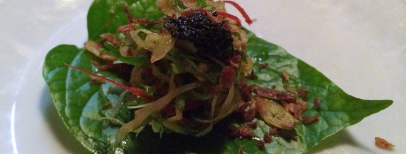 Viime kerta Farangissa aika tarkkaan vuosi sitten oli yhdistelmä erinomaista ja keskinkertaista, niinpä olikin erirtyisen kiinnostavaa mennä nyt uudelleen. Suosionsa on edelleen hyvä: sopivan ajan löytäminen vaati useamman sähköpostikierroksen edestakaisin (online-varaussysteemiä ei ole). Drinksuissa Farang on ania loistanut, sellaisella siis homma käyntiin: Sailor Tom, jossa limeä, minttua, ja inkivääriä - mainio makuyhdistelmä makeutta ja raikkautta. Kolmesta maistelumenusta valittiin … Jatka artikkeliin Farang – menu ”Panwa”