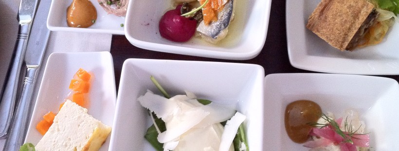 Ravintola Vesilinna toimii Jyväskylässä, Harjun laella olevassa vesi- ja näkötornissa. Ravintolan lista ennen visittiiä netistä katsoen oli kohtalaisen mielenkiintoinen: karamellisoitua possunniskaa, valkoparsajäätelöä, poron kieltä, oliiviöljysorbetti, vuohenjuusto-valkosuklaajäätelö, ... Lisäksi pidän ravintoloista korkeissa paikoissa, joista on hieno näköala (kuten Näsinneula ja Puijo), joten Vesilinna valikoitui helposti käynnin kohteeksi. Maanantai-iltana ravintolassa ei ollut kovin paljoa väkeä, ja muissa … Jatka artikkeliin Vesilinna & Vuoden nuori kokki 2013