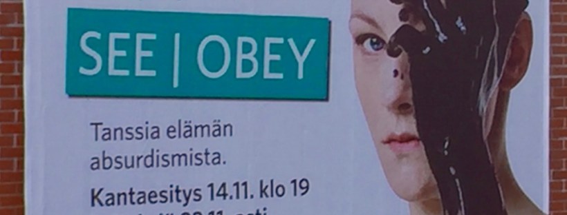 Susanna Leinonen companyn uusin teos SEE | OBEY on kiehtova yhdistelmä elokuvaa, tekstiä, ääntä ja tanssia. Teoksen alaotsikosta ”tanssia elämän absurdismista” en oikein taida saada kiinni, mutta enpä ole alaotsikoista ennekään piitannut: niillä yritetään ohjata vastaanottoa ja tulkintaa, mille en ole altis: kun teos on annettu katsojille, se elää näiden mielissä omaa elämäänsä, kuin kotoa … Jatka artikkeliin SEE | OBEY